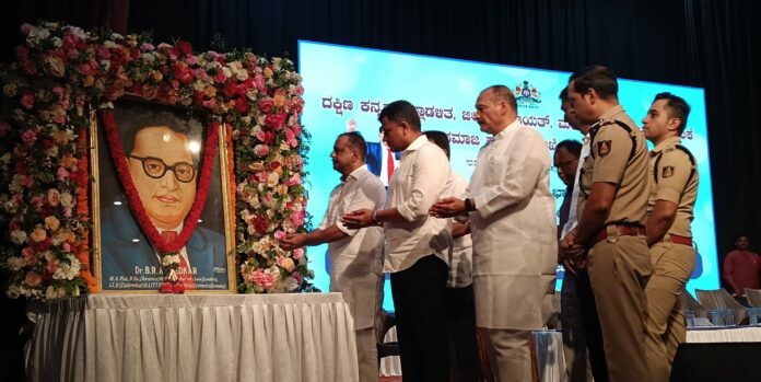 ಮಂಗಳೂರು :ಜಿಲ್ಲಾಡಳಿತ, ಜಿಲ್ಲಾ ಪಂಚಾಯತ್, ಮಂಗಳೂರು ಮಹಾನಗರ ಪಾಲಿಕೆ ಹಾಗೂ ಸಮಾಜ ಕಲ್ಯಾಣ ಇಲಾಖೆ ಸಂಯುಕ್ತ ಆಶ್ರಯದಲ್ಲಿ ಸಂವಿಧಾನ ಶಿಲ್ಪಿ ಭಾರತ ರತ್ನ ಡಾ. ಬಿ. ಆರ್. ಅಂಬೇಡ್ಕರ್ ಅವರ 134 ನೇ ಜನ್ಮದಿನಾಚರಣೆ ಸೋಮವಾರ ನಗರದ ಕುದ್ಮುಲ್ ರಂಗರಾವ್ ಪುರಭವನದಲ್ಲಿ ನಡೆಯಿತು.