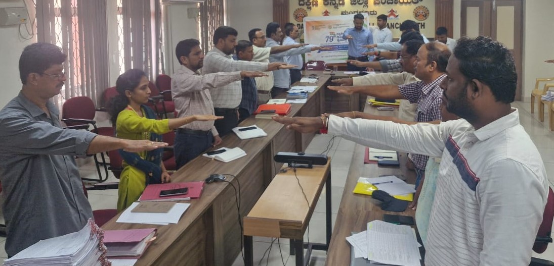 ದಕ್ಷಿಣ ಕನ್ನಡ ಜಿಲ್ಲಾ ಪಂಚಾಯತ್ ಮಿನಿ ಸಭಾಂಗಣದಲ್ಲಿ ನಡೆದ ಕಾರ್ಯಕ್ರಮದಲ್ಲಿ ಮುಖ್ಯ ಕಾರ್ಯ ನಿರ್ವಾಹಕ ಅಧಿಕಾರಿ ನರ್ವಾಡೆ ವಿನಾಯಕ್ ಕಾರ್ಬಾರಿ ಪ್ರತಿಜ್ಞಾ ವಿಧಿ ಬೋಧಿಸಿದರು.