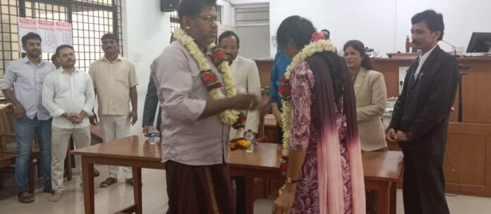 ಅದರಂತೆ ಶನಿವಾರ ಲೋಕ ಅದಾಲತ್ ಗೆ ಆಗಮಿಸಿದ್ದ ಹರೀಶ್-ಶಶಿಕಲಾ ದಂಪತಿಯು ಪ್ರಧಾನ ಜಿಲ್ಲಾ ನ್ಯಾಯಾಧೀಶ ಬಸವರಾಜ ಅವರ ಸಮಕ್ಷಮದಲ್ಲಿ ಪರಸ್ಪರ ಹಾರ ಬದಲಾಯಿಸುವ ಮೂಲಕ ಒಂದಾಗುವ ಮೂಲಕ ಪ್ರಕರಣ ಮುಕ್ತಾಯ ಗೊಂಡಿತು.