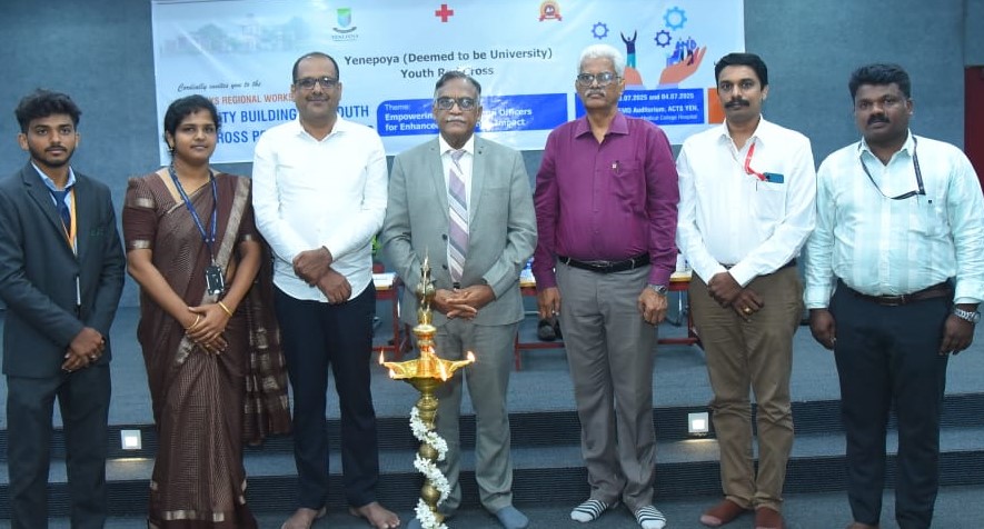 ರೆಡ್ಕ್ರಾಸ್ ಸೊಸೈಟಿ ದ.ಕ.ಜಿಲ್ಲಾ ಘಟಕದ ನಿರ್ದೇಶಕ ಪಿ.ಬಿ.ಹರೀಶ್ ರೈ ಕಾರ್ಯಾಗಾರ ಉದ್ಘಾಟಿಸಿದರು.ರೆಡ್ ಕ್ರಾಸ್ ಕಾರ್ಯದರ್ಶಿ ಕಿಶೋರ್ಚಂದ್ರ ಹೆಗ್ಡೆ ಮುಖ್ಯ ಅತಿಥಿಯಾಗಿದ್ದರು. ಯೇನೆಪೊಯ ಪರಿಗಣಿತ ವಿ.ವಿ.ಯ ಕುಲಪತಿ ಡಾ.ಎಂ.ವಿಜಯಕುಮಾರ್ ಅಧ್ಯಕ್ಷತೆ ವಹಿಸಿದ್ದರು